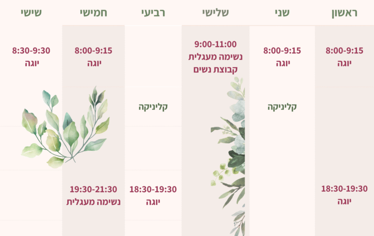 מרחב בו אנו נפגשים מדי שבוע לתרגולי יוגה ולמפגשי נשימה היוצרים רווחה, מאפשרים אתנחתא מעומס היומיום ומחזירים אותנו אל עצמנו, פעם אחר פעם…